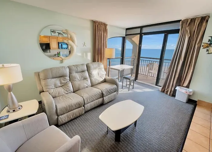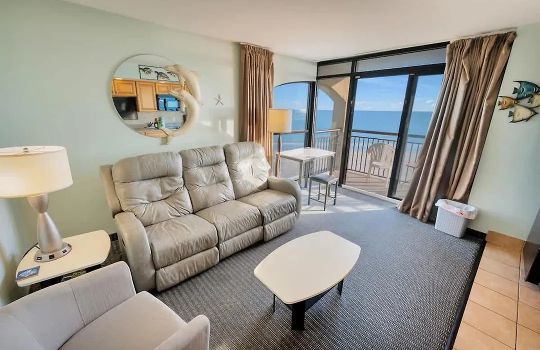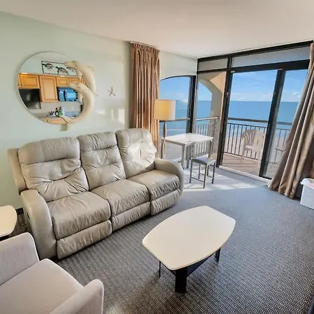 The 58 m² New Corner Direct Oceanfront View5Th Floor Pools Apartment Myrtle Beach features convenient proximity to such city attractions as the North Beach Towers, situated around 5 minutes' walk away. With access to a golf course, this beachfront apartment is ideal for active guests seeking recreation options.